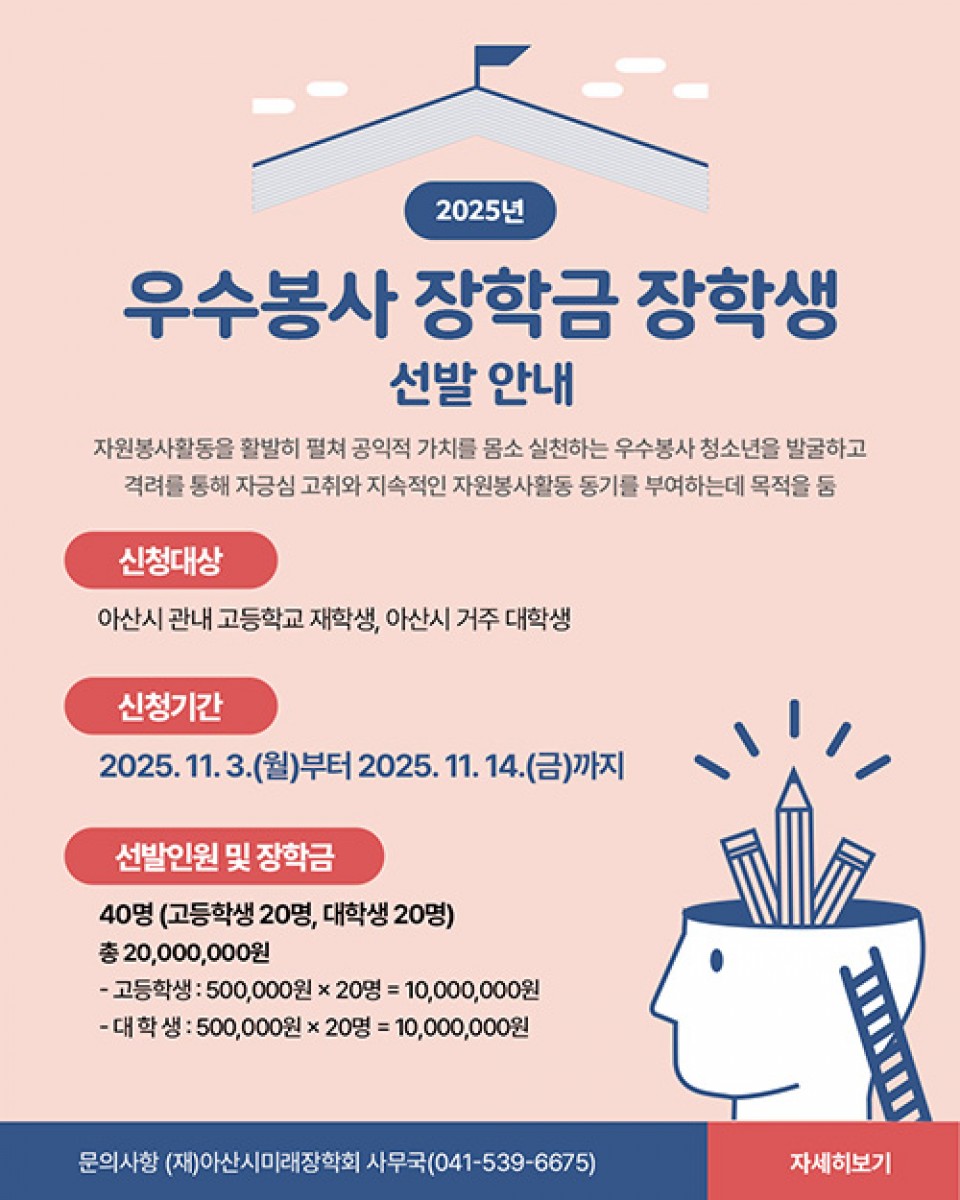 2025년 우수봉사 장학생 선발 명단(대학생)